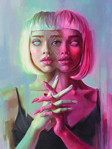 A l’Eva també la vaig coneixer a instagram, al contrari de la Ruth, el que m’atreu d’aquesta artista és el com es marca la pinzellada, al fer obres més surrealistes i amb colors menys realistes per pintar els personatges i els fons, la pinzellada queda molt integrada i atreu. M’encanta com barreja el surrealisme amb el realisme. Això és una cosa que m’encantaria integrar a la meva obra, el surrealisme realista.